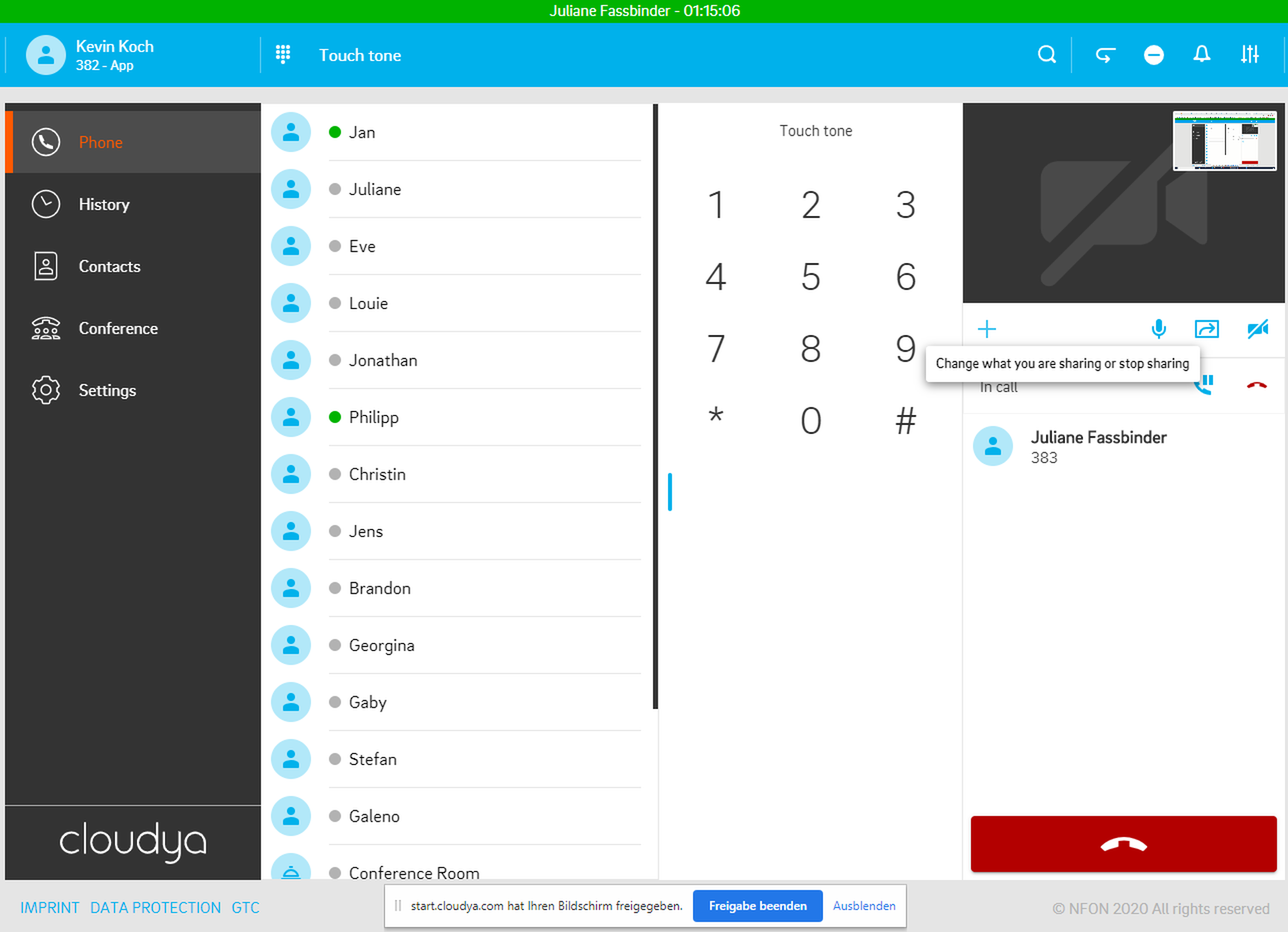 This manual helps you to optimise the usage of Cloudya, the cloud telephone system by NFON.